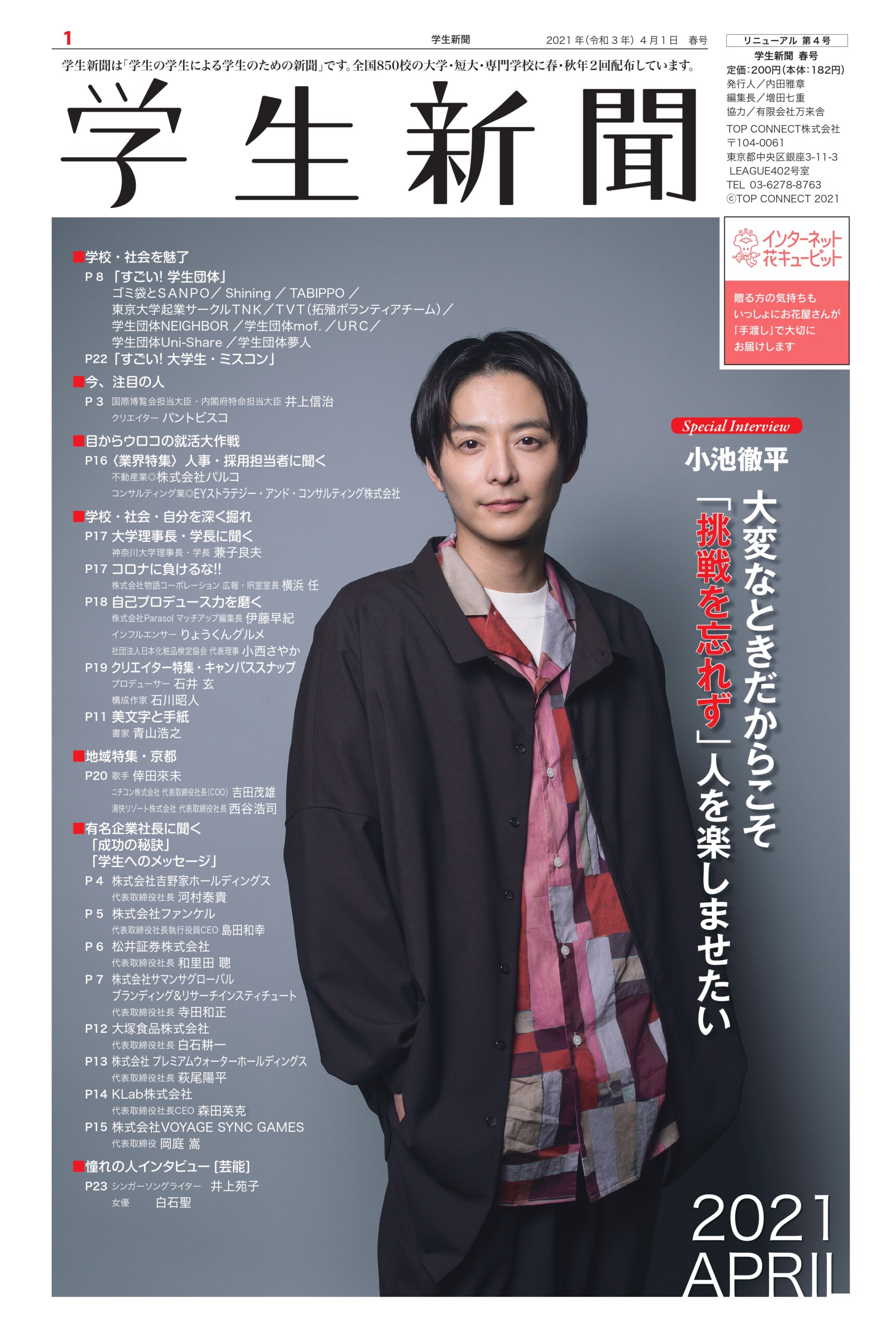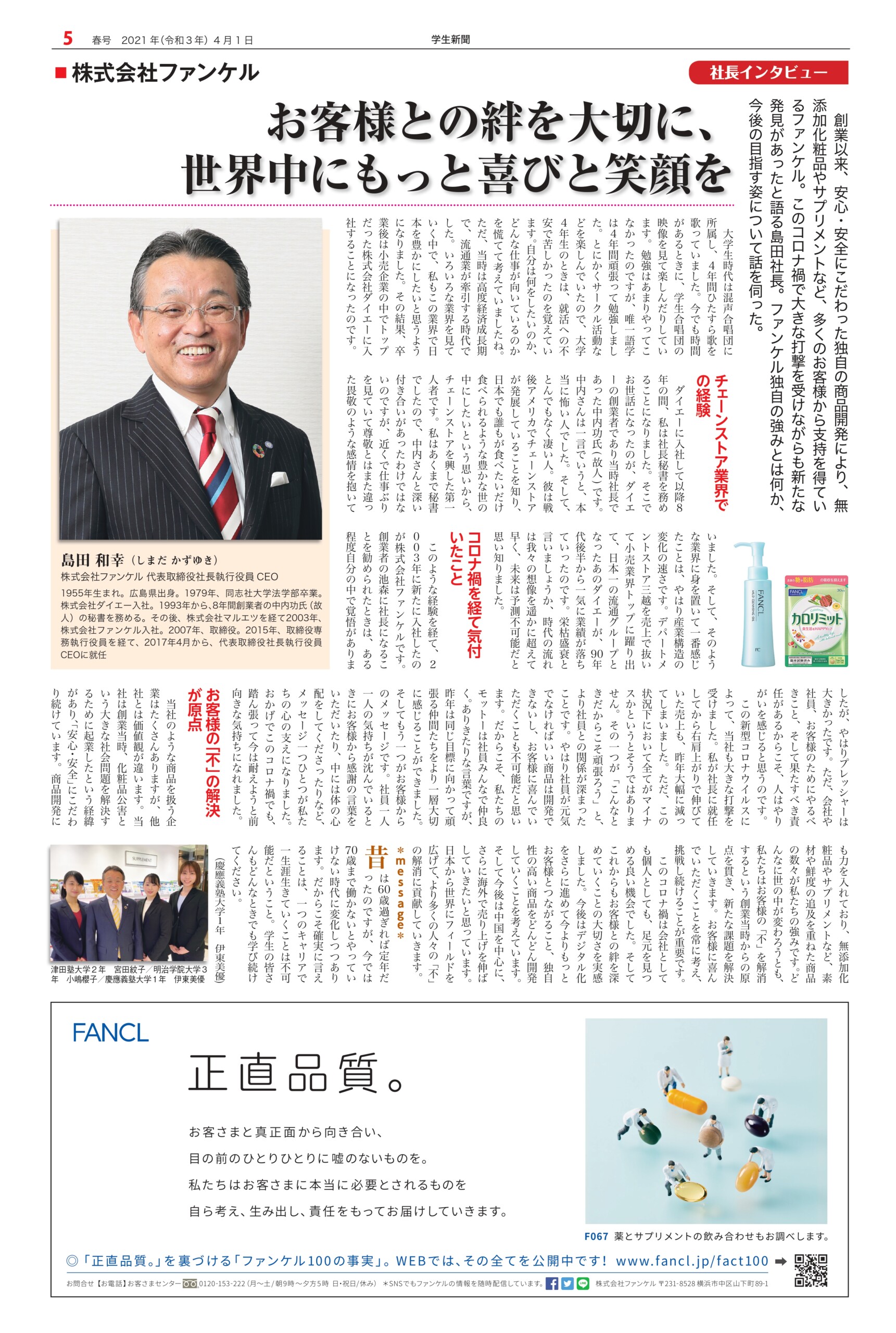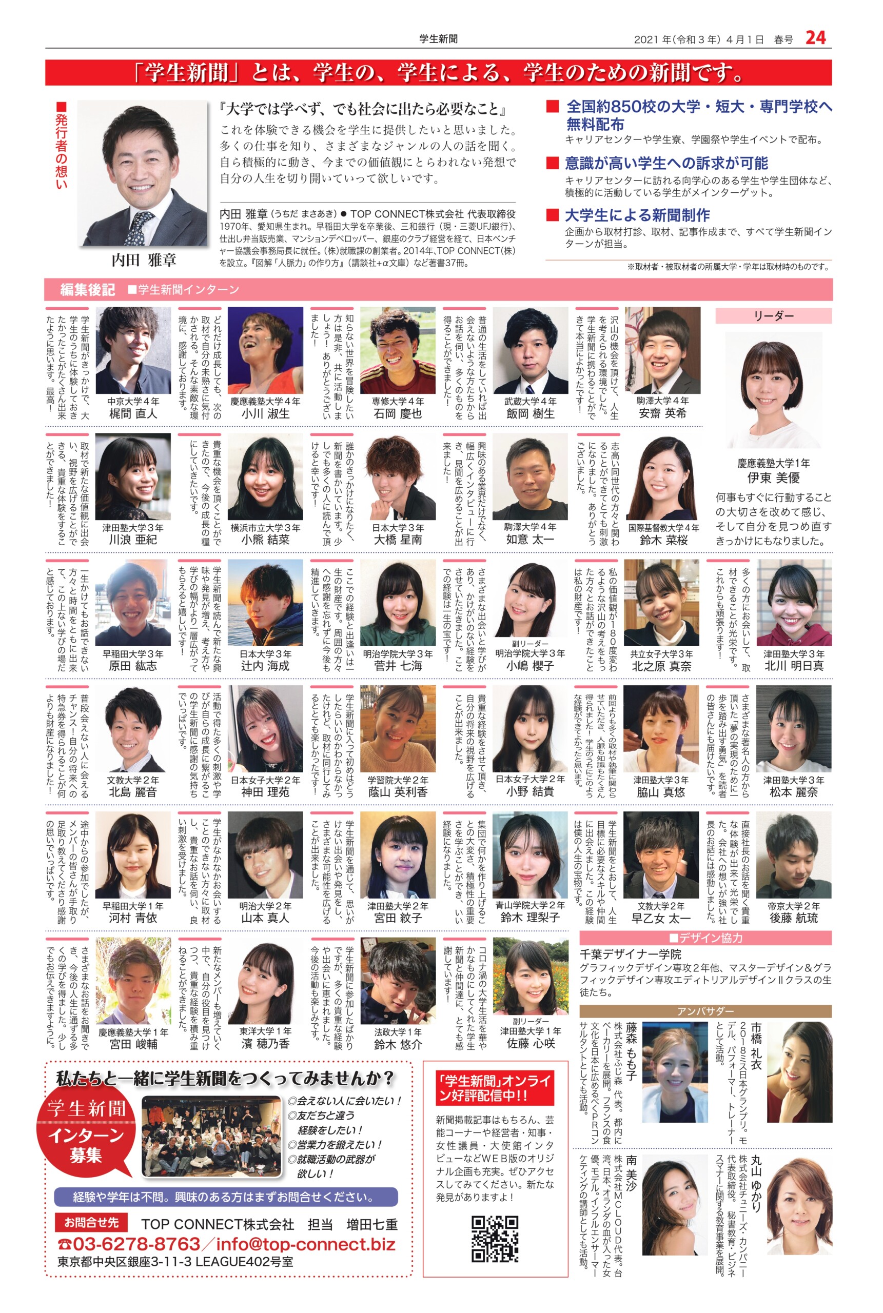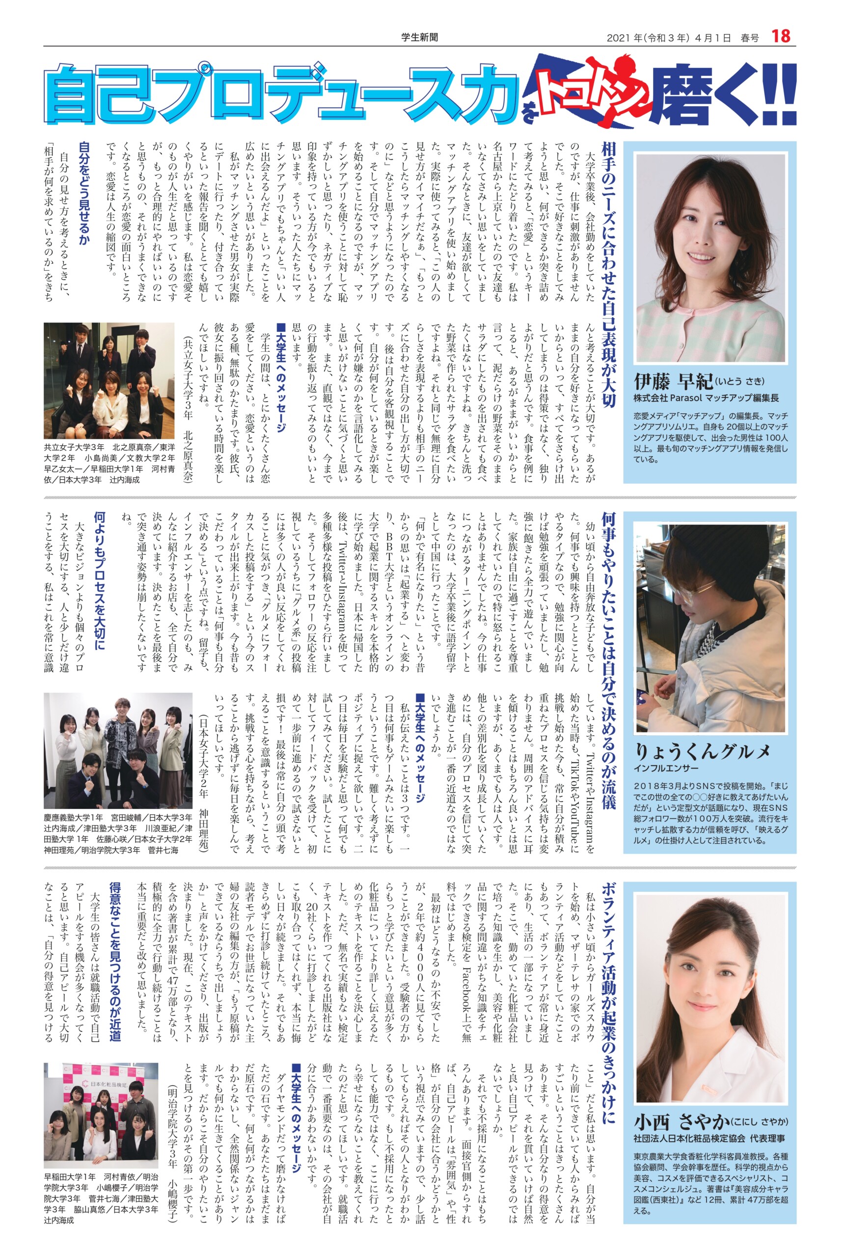 Student newspaper October 2021 issue 2021.04.01 +1 Hatena Pocket RSS Feedly Pin it +1 Hatena Pocket RSS Feedly Pin it Student newspaper intern, Management, entertainer comment: 0 Minoru Tsuzuki, Vice President and Professor, Nippon Pharmaceutical University Samantha Global Branding & Research Institute Co., Ltd. List of related articles FRAGRANCE DAY 2023 2023.11.09 Fujiya Co., Ltd. President and CEO Nobuyuki Kawamura 2025.12.17 Kamakura Shinsho Co., Ltd. Chairman and CEO Yutaka Shimizu 2022.07.26 Movie "This is Kirishima" 2025.06.30 Plant Hunter Seijun Nishihata 2024.04.01 Toyodo Co., Ltd. President and CEO Takeo Matsumori 2025.09.20 Malaysian Ambassador to Japan Dato' Syahrir Efendi... 2025.12.31 Actor Karma 2026.02.20 Comment (0) Trackback (0) There are no comments on this article. There is no trackback to this article. Trackback URL To cancel reply. Name (required) E-MAIL (required) *will not be published URL