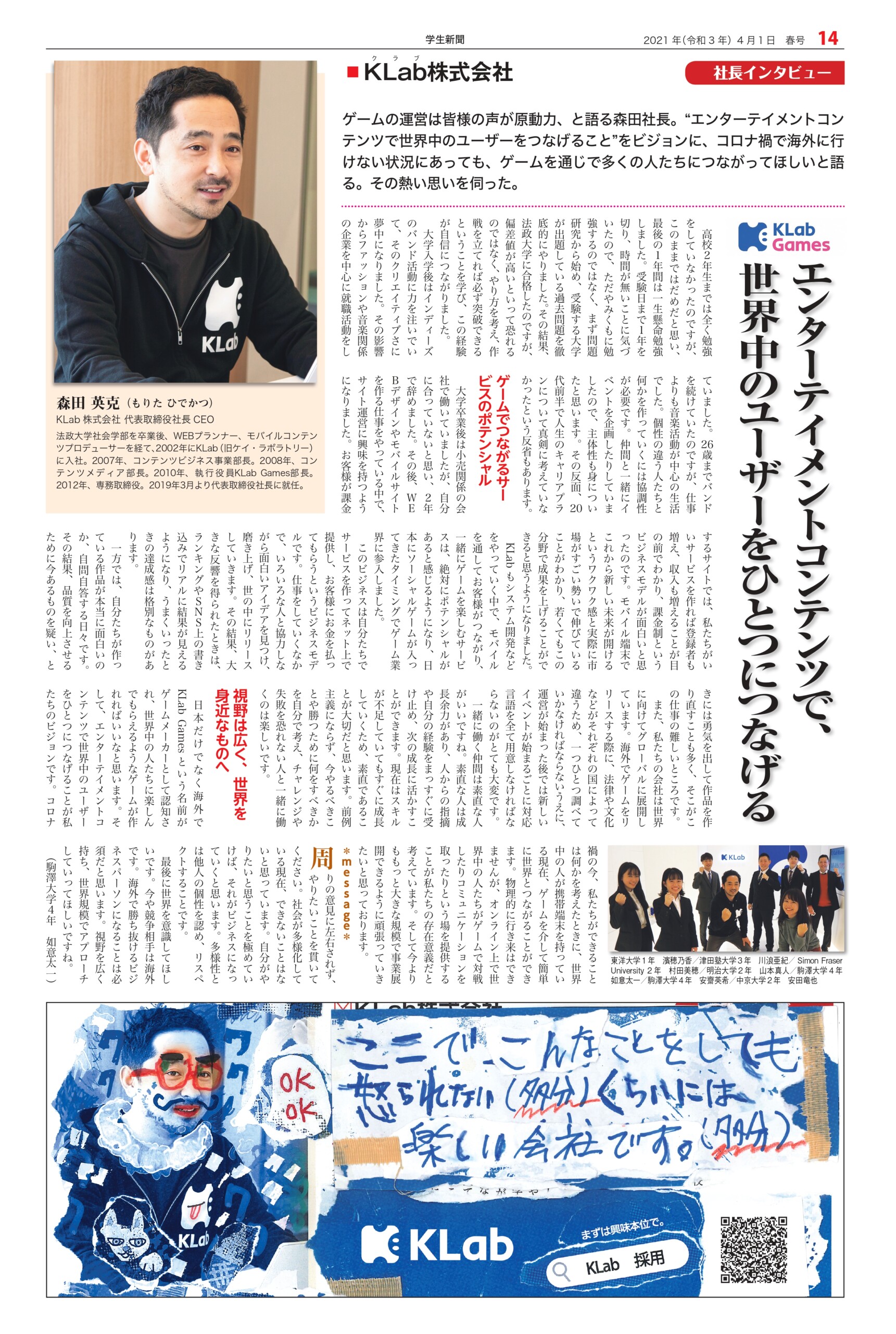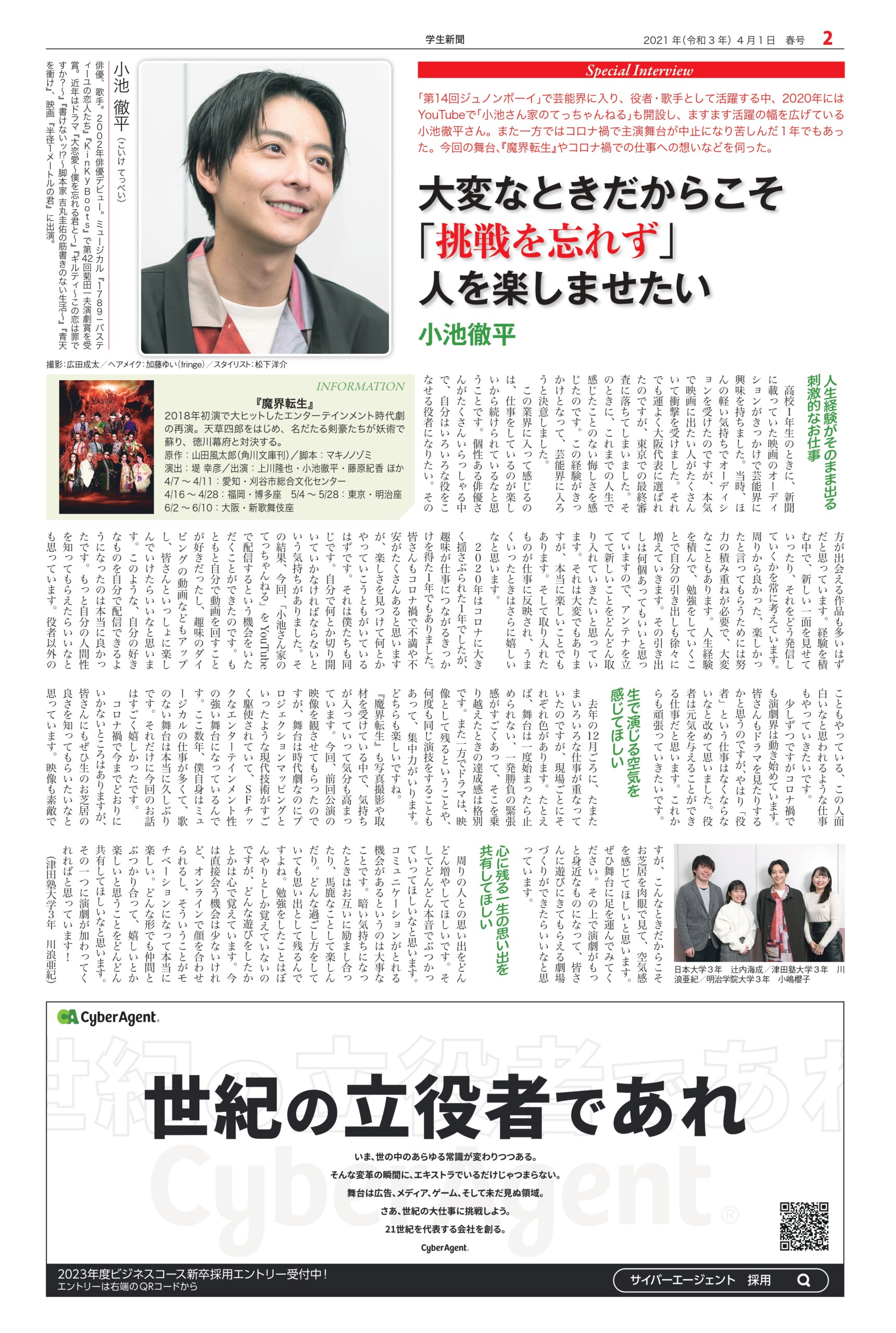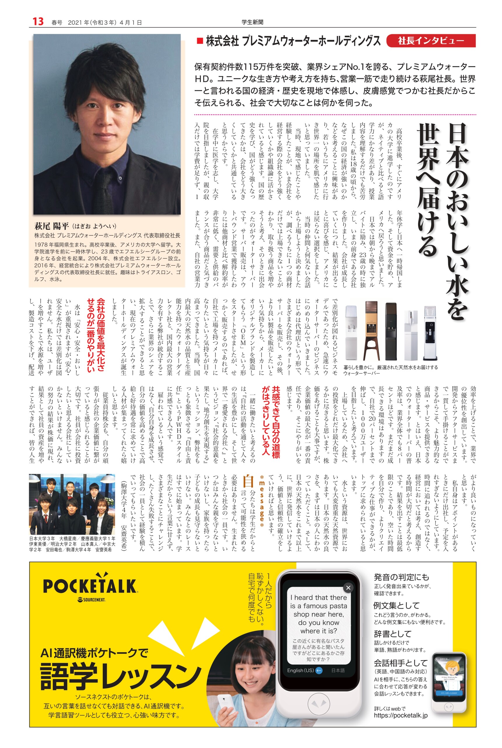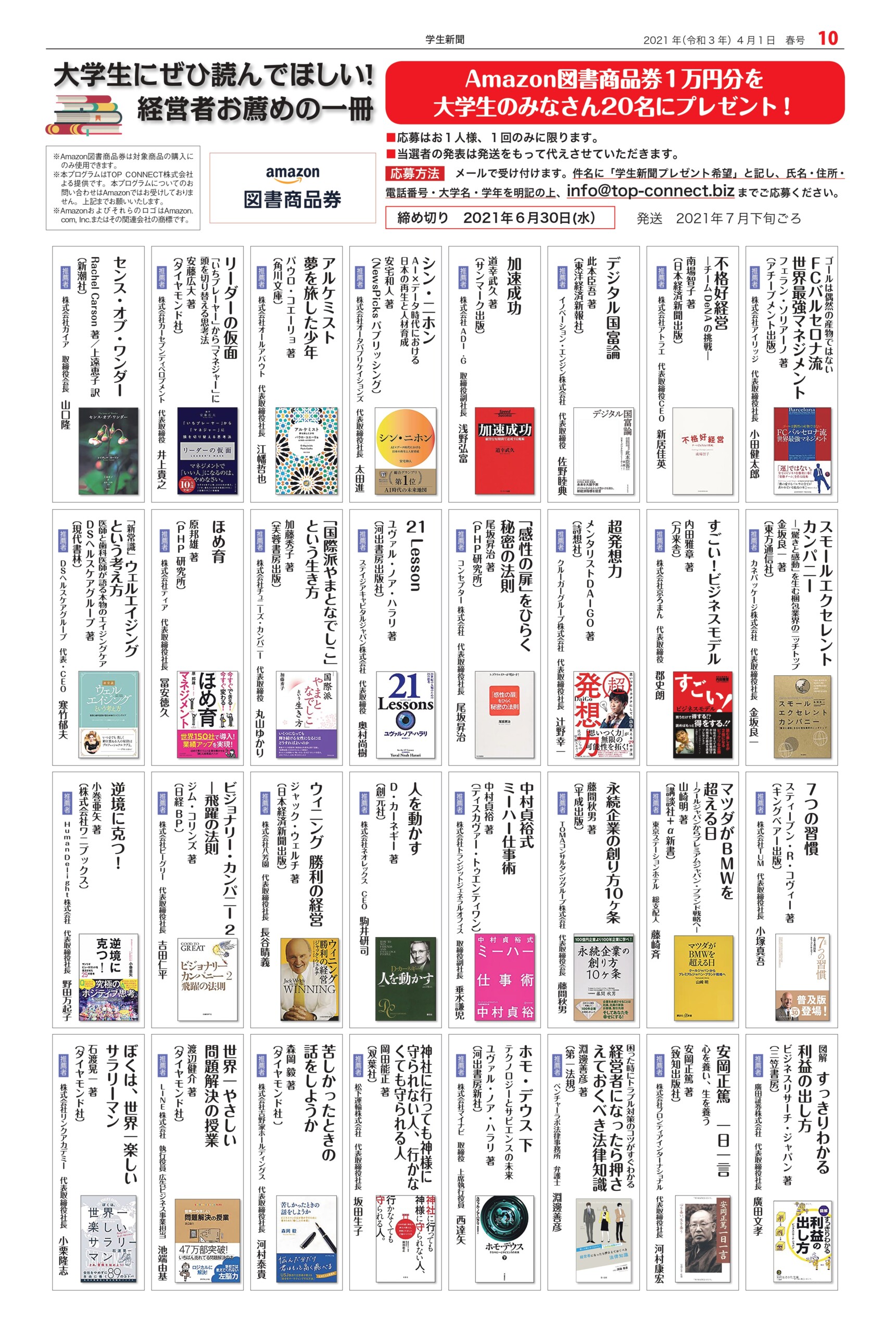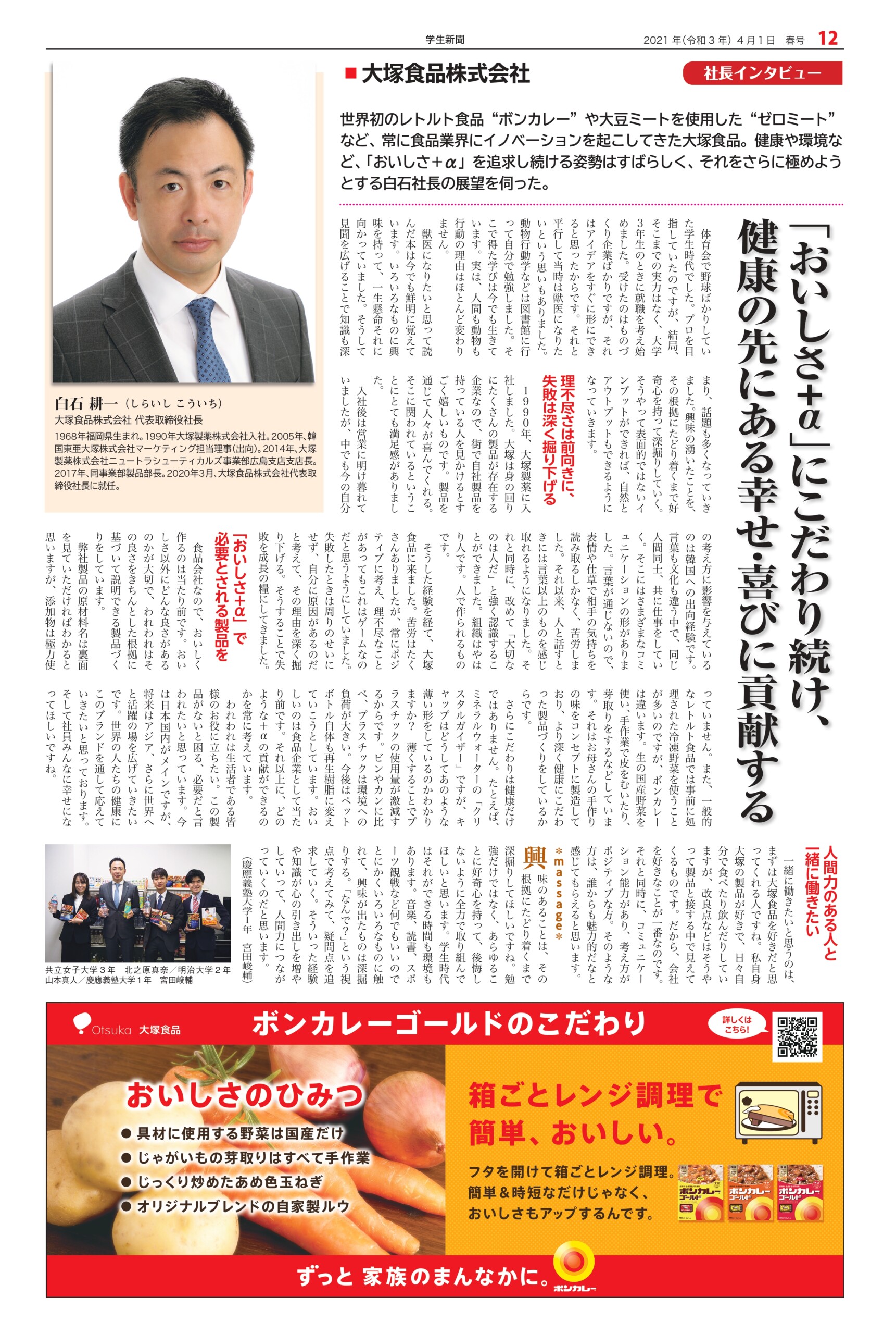 Student newspaper October 2021 issue 2021.04.01 +1 Hatena Pocket RSS Feedly Pin it +1 Hatena Pocket RSS Feedly Pin it Student newspaper intern, Management, entertainer comment: 0 Minoru Tsuzuki, Vice President and Professor, Nippon Pharmaceutical University Samantha Global Branding & Research Institute Co., Ltd. List of related articles FRAGRANCE DAY 2023 2023.11.09 Fujiya Co., Ltd. President and CEO Nobuyuki Kawamura 2025.12.17 Kamakura Shinsho Co., Ltd. Chairman and CEO Yutaka Shimizu 2022.07.26 Movie "This is Kirishima" 2025.06.30 Plant Hunter Seijun Nishihata 2024.04.01 Toyodo Co., Ltd. President and CEO Takeo Matsumori 2025.09.20 Malaysian Ambassador to Japan Dato' Syahrir Efendi... 2025.12.31 Actor Karma 2026.02.20 Comment (0) Trackback (0) There are no comments on this article. There is no trackback to this article. Trackback URL To cancel reply. Name (required) E-MAIL (required) *will not be published URL