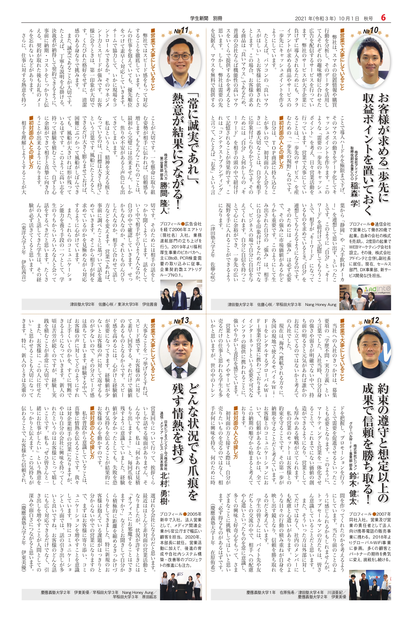 AdInte Co., Ltd. / Pikapaka Co., Ltd. / Vision Co., Ltd. / Japan Business Systems Co., Ltd. 2021.10.01 +1 Hatena Pocket RSS Feedly Pin it +1 Hatena Pocket RSS Feedly Pin it Top sales, Akane Isa, Miyu Ito, Student newspaper intern comment: 0 Kaonavi Co., Ltd. / Speee Co., Ltd. / SHIFT Co., Ltd. / Legs Co., Ltd. Cyber Buzz Inc. / Lenovo Japan LLC / Sol... List of related articles Kabuki actor/actor Onoe Masahide 2025.11.03 Actor Osamu Mukai 2025.04.15 President and CEO of Meiko Network Japan Co., Ltd. ... 2023.09.29 REAL JAPAN Co., Ltd. Representative Director Keigo Takasaki 2024.08.01 Reading Act "A Man Called Scrooge" ~The classic "C... 2025.12.28 Ryoko Yonekura: An actor who can live a life other than her own... 2023.04.01 Atsushi Seike, President of the Japanese Red Cross Society 2025.12.20 Toru Sakai, President and CEO of JP Holdings Co., Ltd. 2023.04.20 Comment (0) Trackback (0) There are no comments on this article. There is no trackback to this article. Trackback URL To cancel reply. Name (required) E-MAIL (required) *will not be published URL