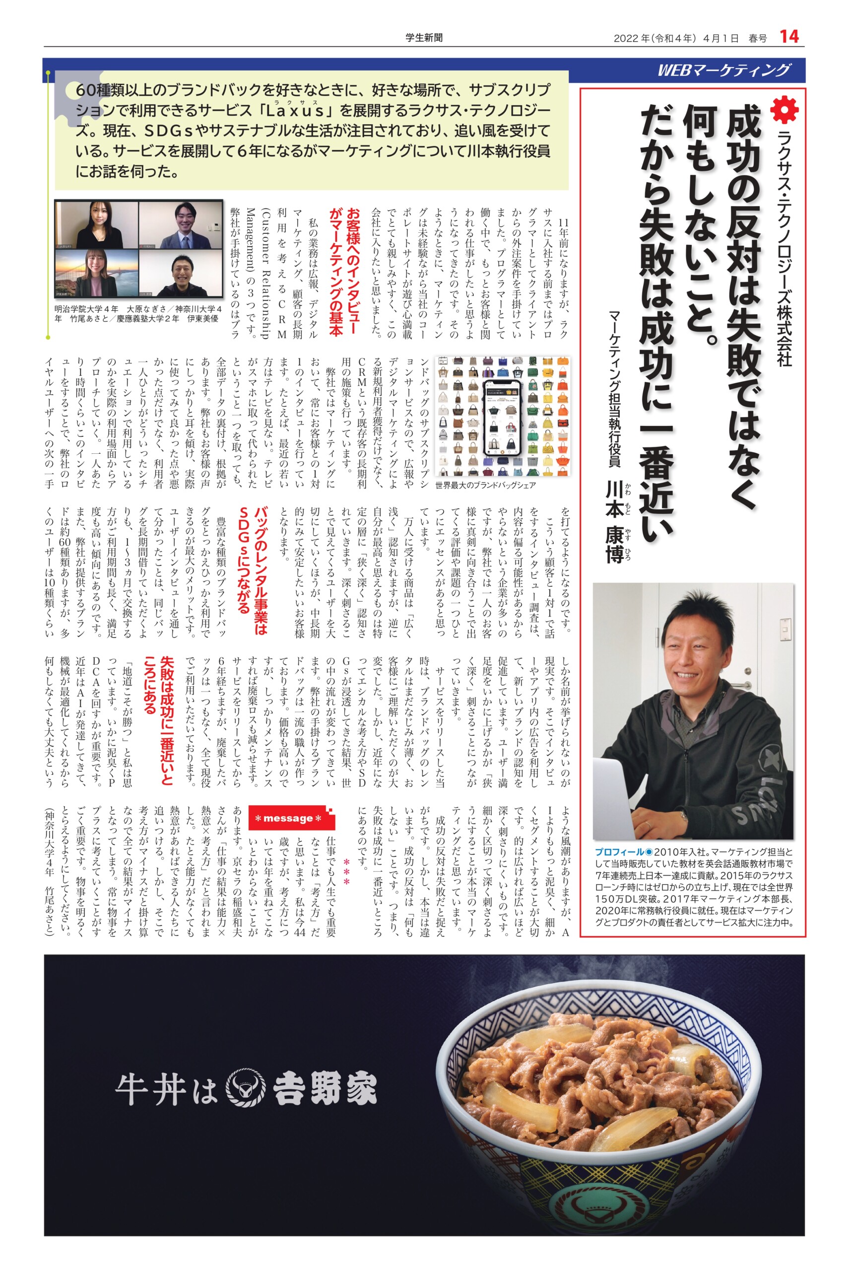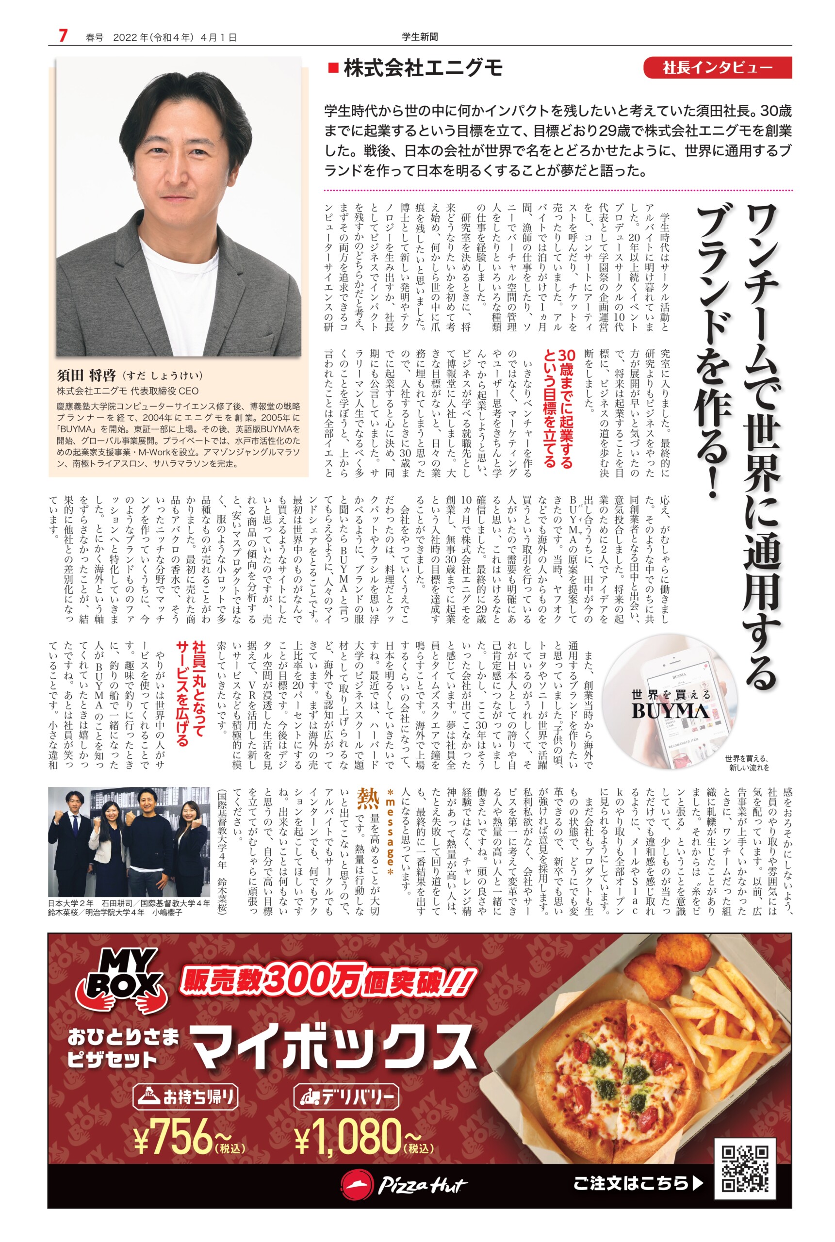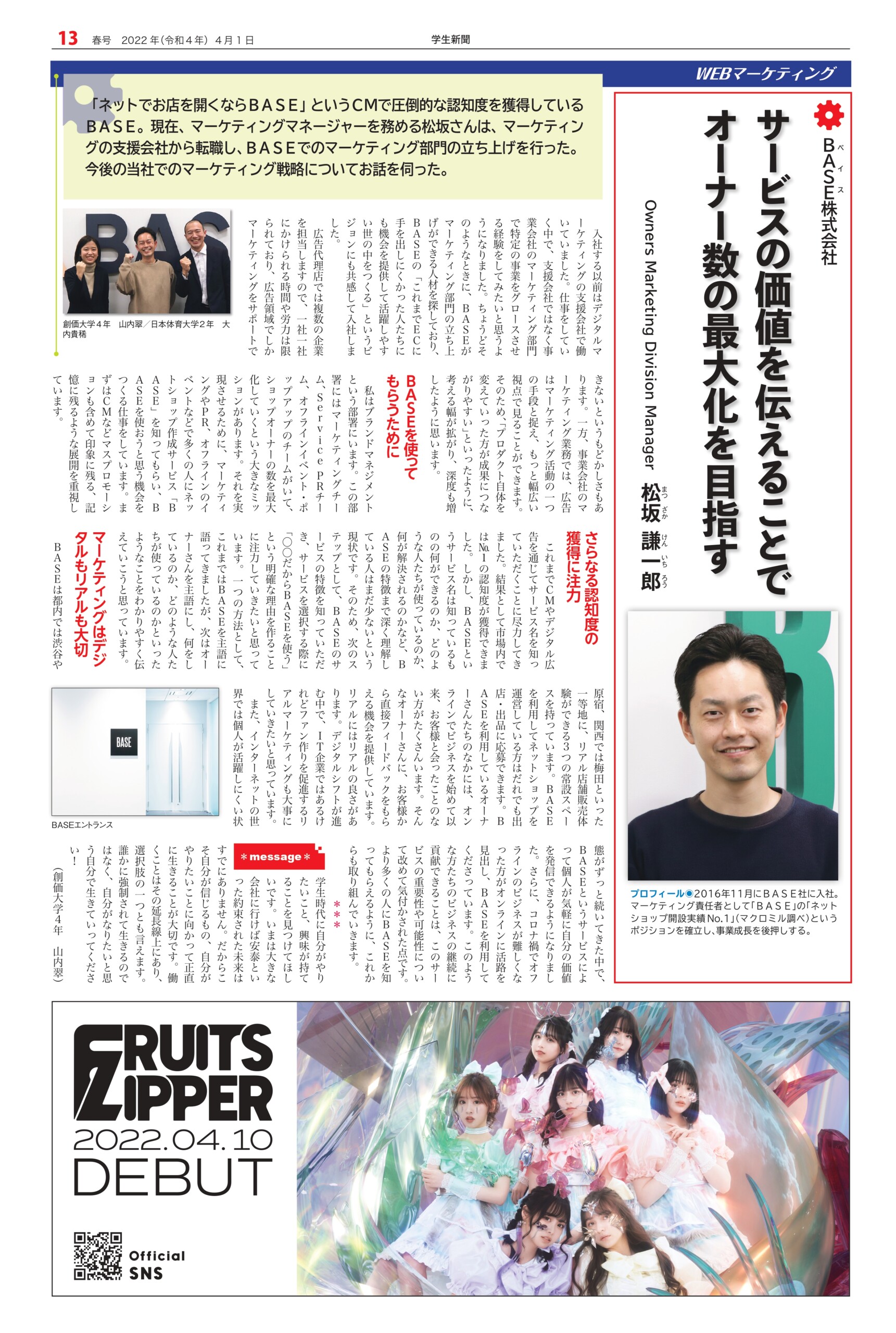 Student newspaper October 2022 issue 2022.04.01 +1 Hatena Pocket RSS Feedly Pin it +1 Hatena Pocket RSS Feedly Pin it Student newspaper intern, Management, entertainer comment: 0 W TOKYO Co., Ltd. President and CEO Noriyoshi Murakami Tokyu Agency Co., Ltd. List of related articles Yasushi Funakoshi, CEO of HIKKY Inc. / CVO (Chief... 2025.02.14 Michinori Mizuno, Chairman of the Board, Sony Music Foundation 2023.04.13 Kasumi Yamaya I'm looking forward to the scenery that awaits me at the end of my journey, so I'll do my best now 2021.10.07 Actor Kentaro Ito 2024.10.01 Fashion show "Gap, Hint" Waseda University Textile... 2024.12.29 "Multi-Unit Apartment" Dress Rehearsal Report ~ "Myself..." 2025.08.05 Special Talk "Let's Learn About Uzbekistan" 2023.01.30 Stage play "FINAL FANTASY BRAVE EXVIUS Phantom War THE STAGE..." 2026.02.05 Comment (0) Trackback (0) There are no comments on this article. There is no trackback to this article. Trackback URL To cancel reply. Name (required) E-MAIL (required) *will not be published URL