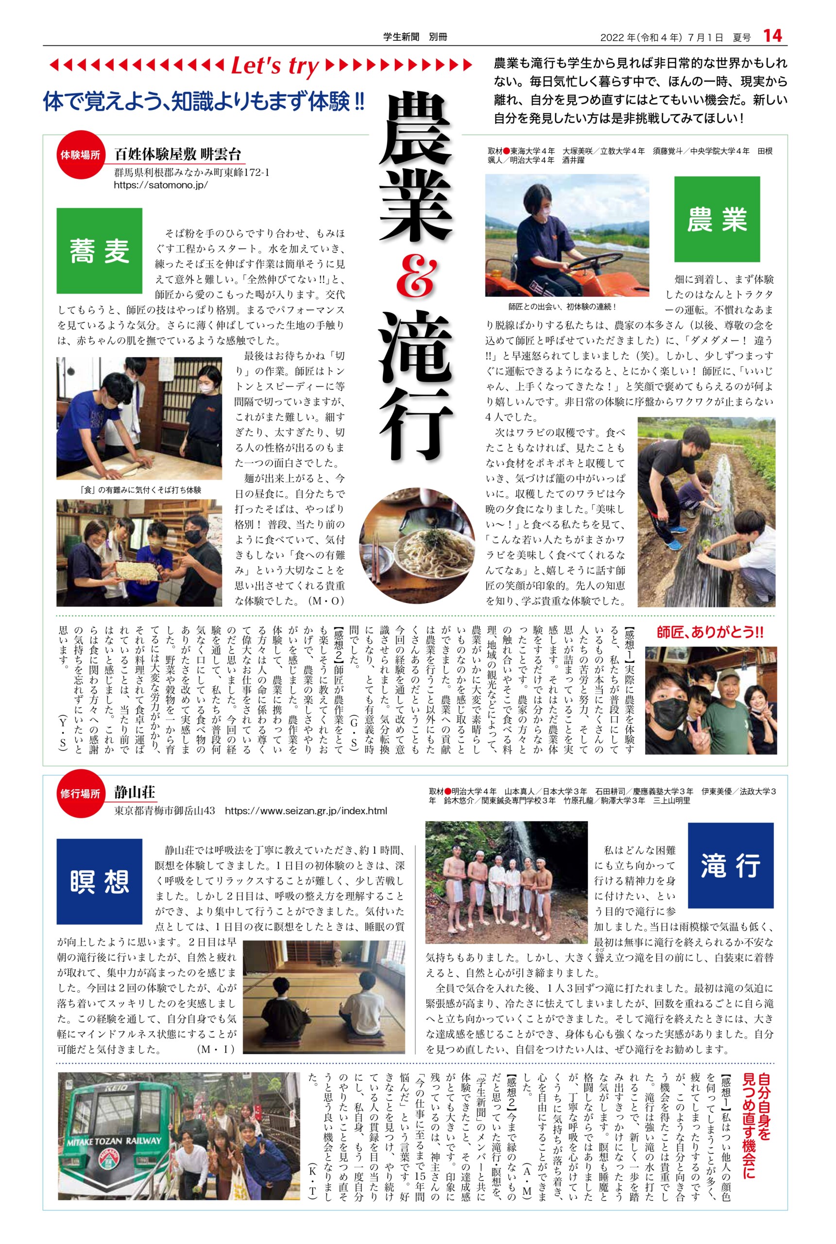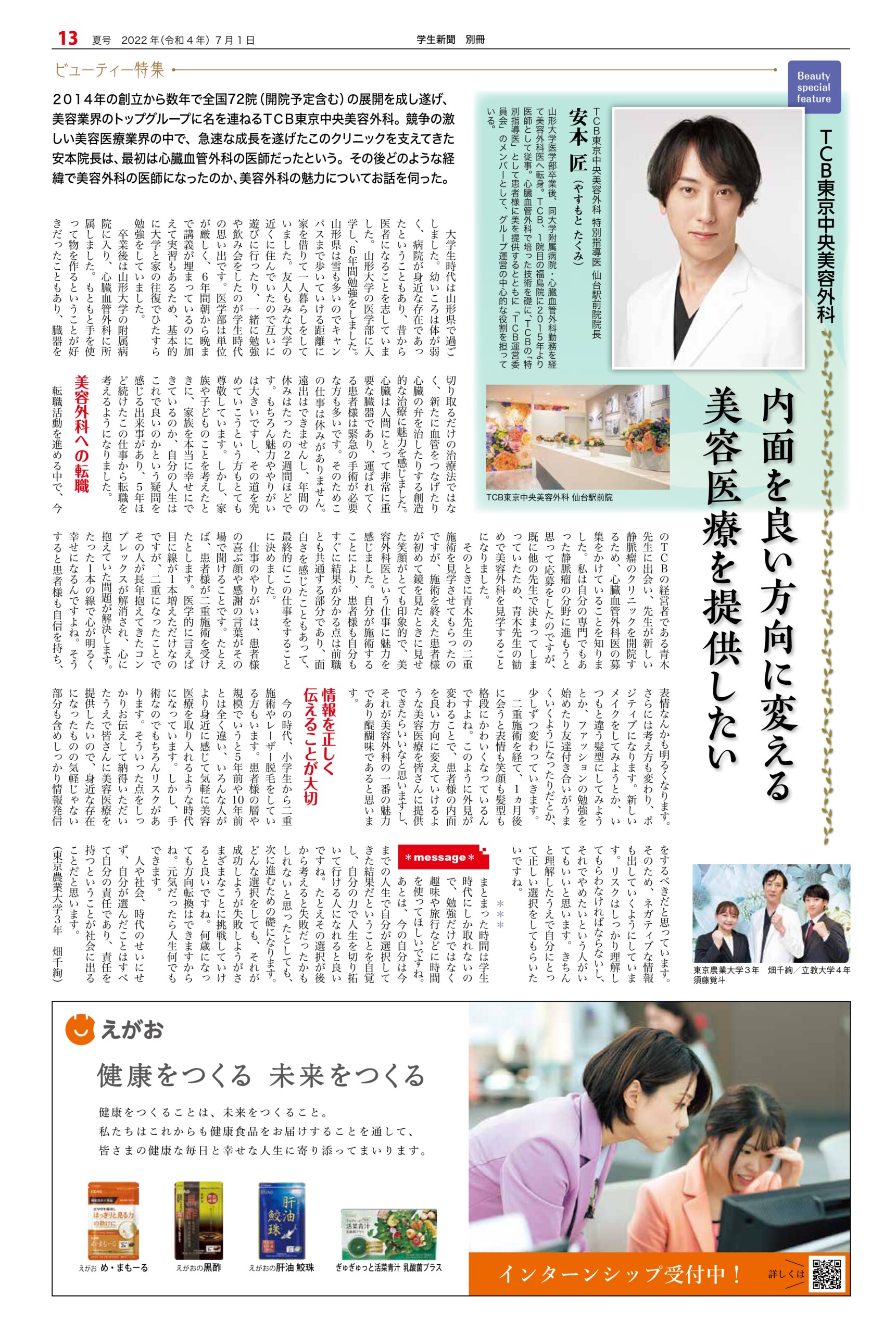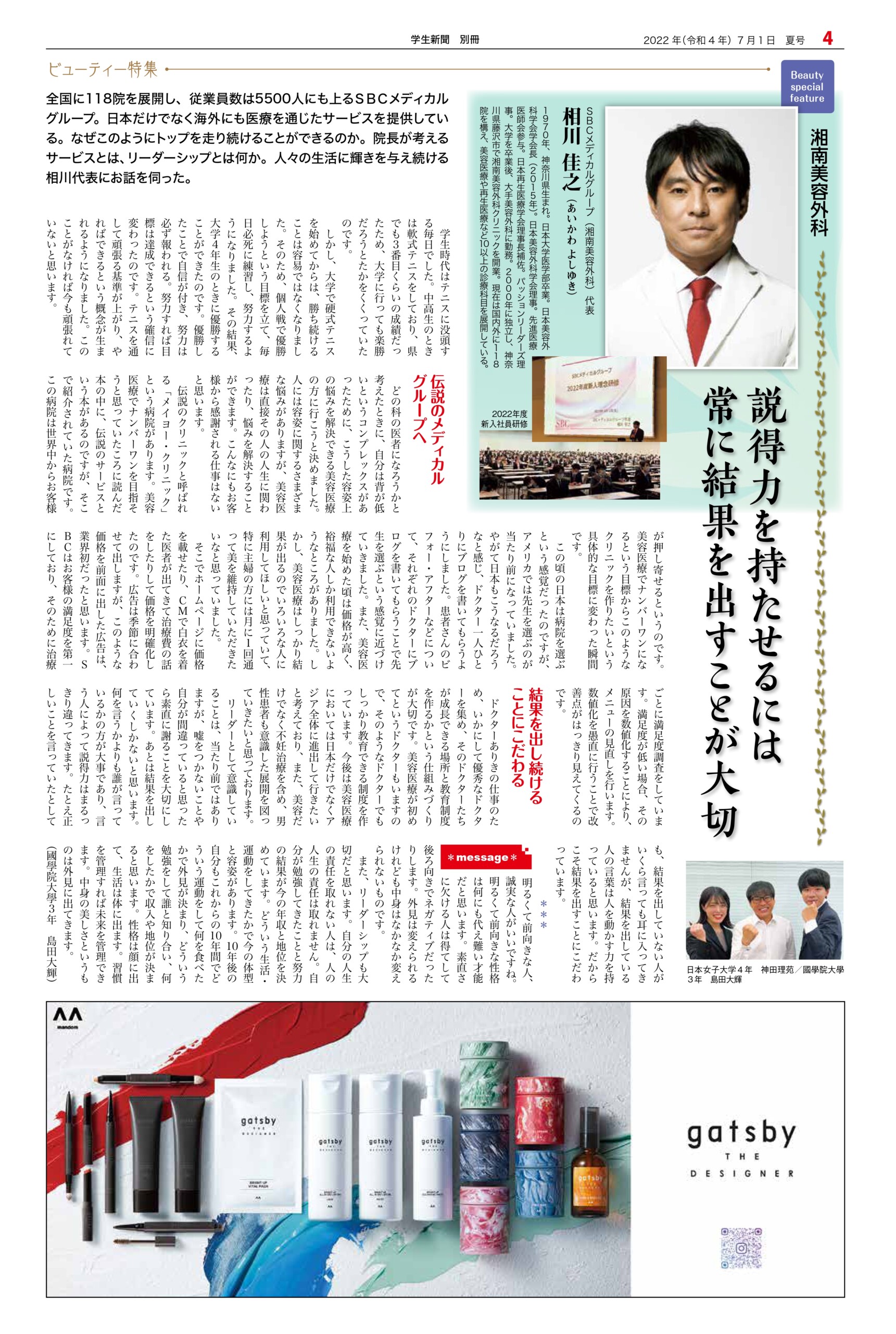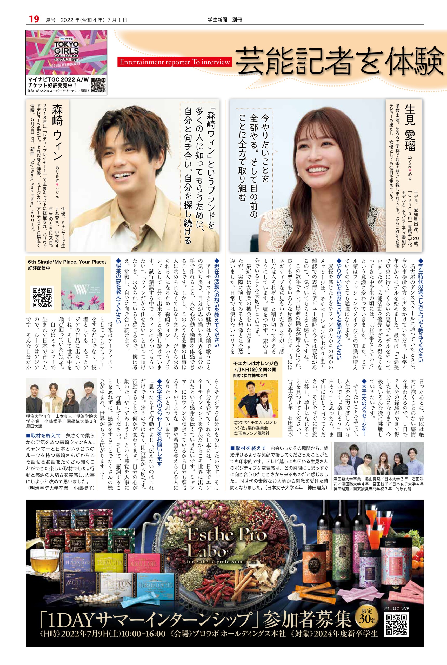 Student Newspaper April 2022 Special Edition 2022.07.01 +1 Hatena Pocket RSS Feedly Pin it +1 Hatena Pocket RSS Feedly Pin it Student newspaper intern, Management, entertainer comment: 0 Kento Hayashi: How to read the hidden parts deep within the script... Regina Clinic Group Director Masaaki Kimura List of related articles Actor, screenwriter, and producer Akiko Iwase 2023.08.02 The 39th Mynavi Tokyo Girls Collection 2024 AUTUMN... 2024.11.16 Magokoro Group Co., Ltd. Representative Director Naka... 2022.07.01 Hiroyuki Tsuneishi, President and CEO of Sprix Co., Ltd. 2019.10.31 "Multi-Unit Apartment" Dress Rehearsal Report ~ "Myself..." 2025.08.05 EM Net Japan Co., Ltd./Benefit Co., Ltd. 2022.04.01 Yuichiro Ichitani, Member of the House of Representatives of the Japan Restoration Party 2023.09.19 Stage play "FINAL FANTASY BRAVE EXVIUS Phantom War THE STAGE..." 2026.02.05 Comment (0) Trackback (0) There are no comments on this article. There is no trackback to this article. Trackback URL To cancel reply. Name (required) E-MAIL (required) *will not be published URL