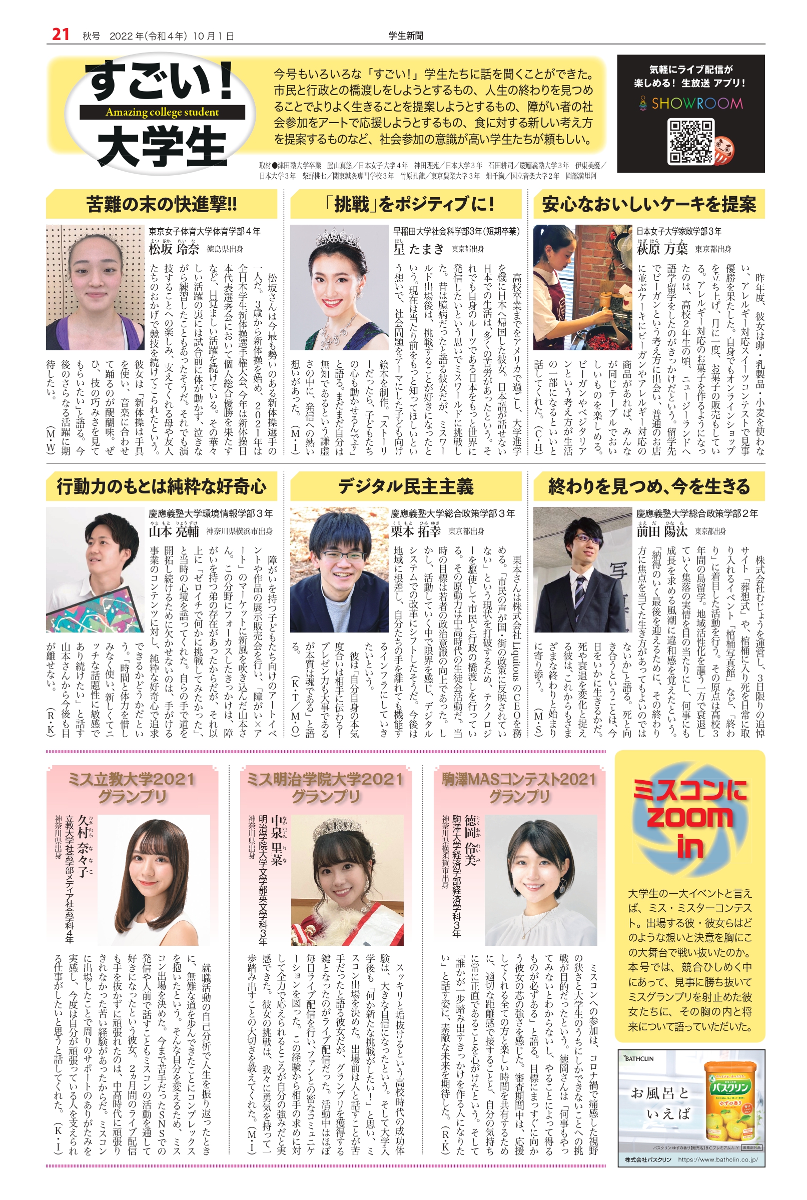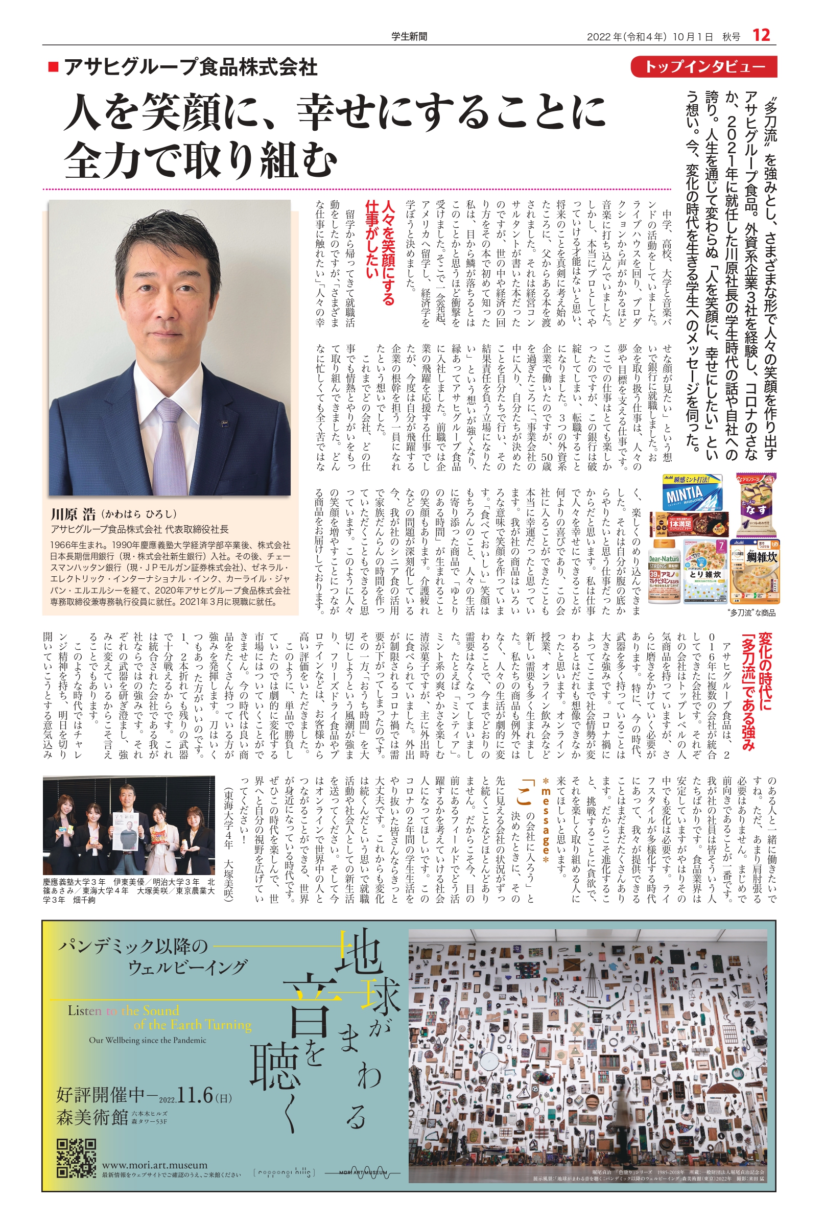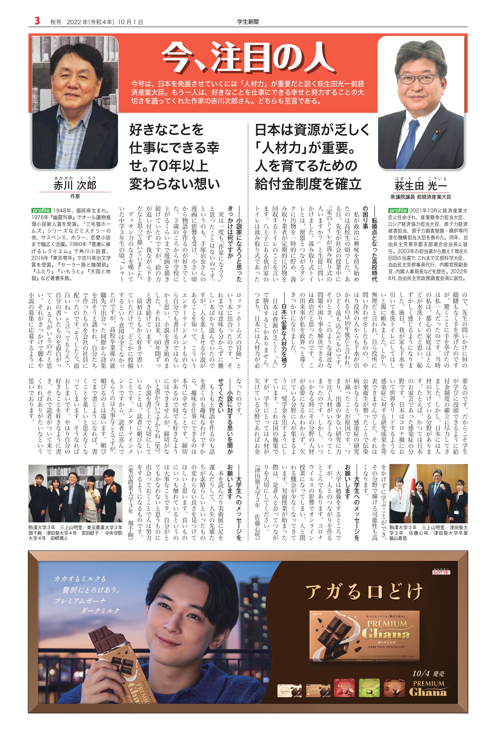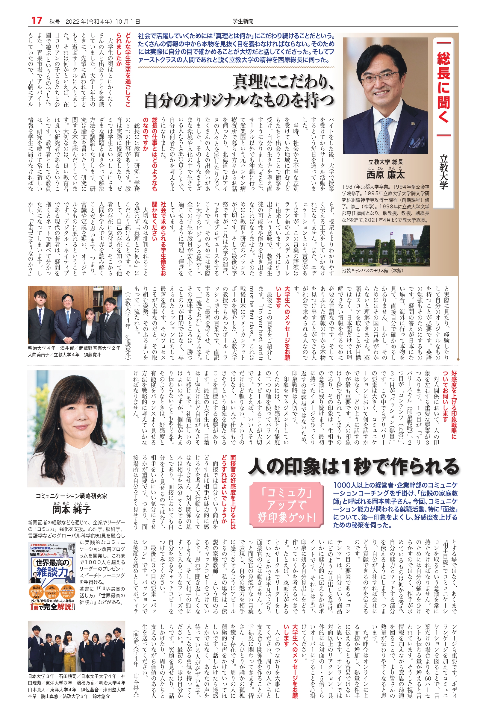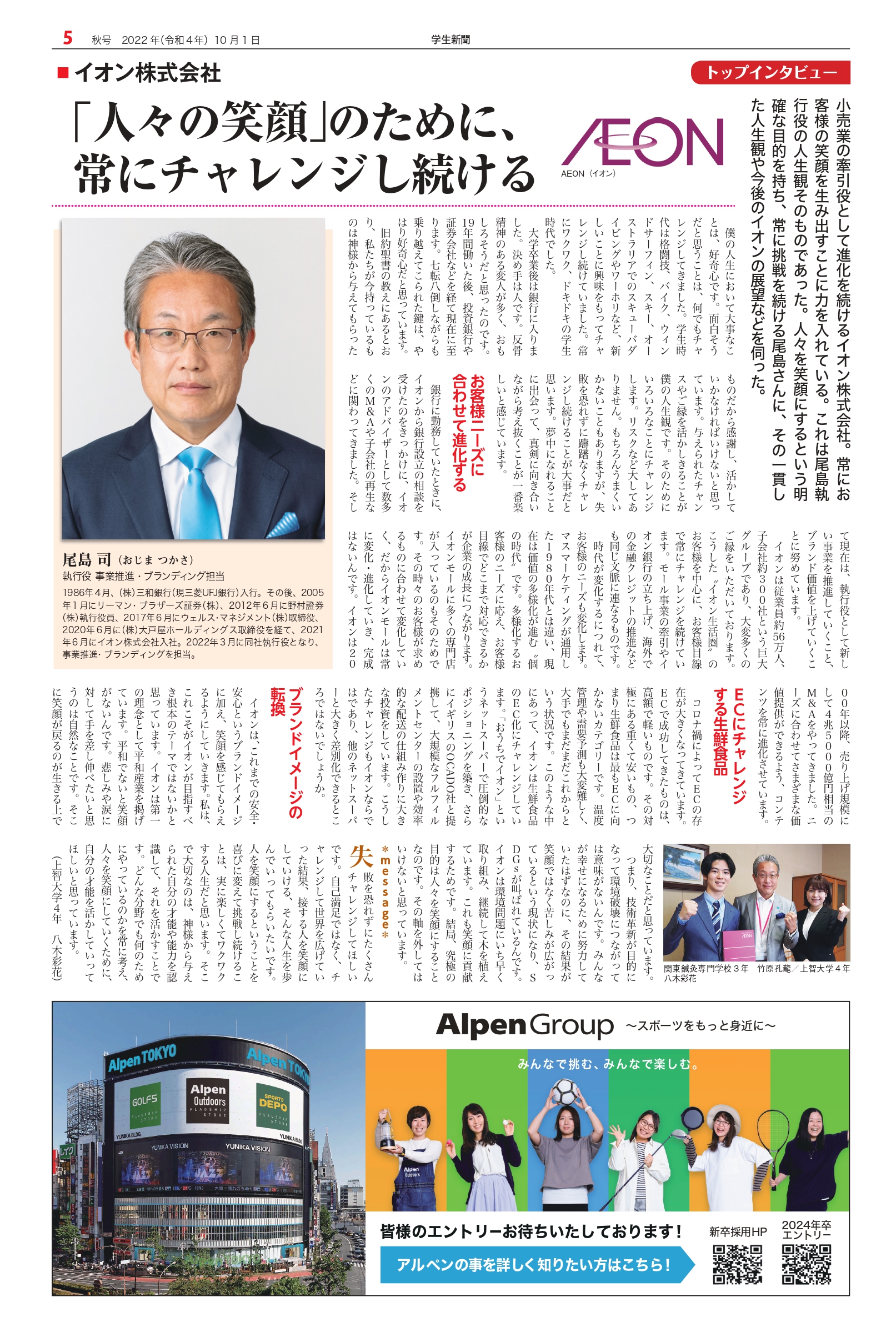 Student newspaper October 2022 issue 2022.10.01 +1 Hatena Pocket RSS Feedly Pin it +1 Hatena Pocket RSS Feedly Pin it Student newspaper intern, Management, entertainer comment: 0 Startia Holdings, Inc. President and CEO... Hiroshi Kawahara, President and CEO, Asahi Group Foods Co., Ltd. List of related articles Golf is hot right now! 2024.10.01 Michinori Mizuno, Chairman of the Board, Sony Music Foundation 2023.04.13 Yuko Tashiro, Chairman of the Board, Accordia Golf Co., Ltd. 2025.01.24 Actress Mei Hata 2024.10.01 Enako: Do what you love for a living! Anime fans can rest easy knowing... 2023.10.01 Yasuaki Nakamichi, President and CEO of Family Funeral Famille Co., Ltd. 2023.10.01 Amazon Original "Angel Flight: The International Repatriation..." 2023.03.27 Yoshinobu Kosugi, Advisor to Nippon Television Network Corporation 2026.03.02 Comment (0) Trackback (0) There are no comments on this article. There is no trackback to this article. Trackback URL To cancel reply. Name (required) E-MAIL (required) *will not be published URL