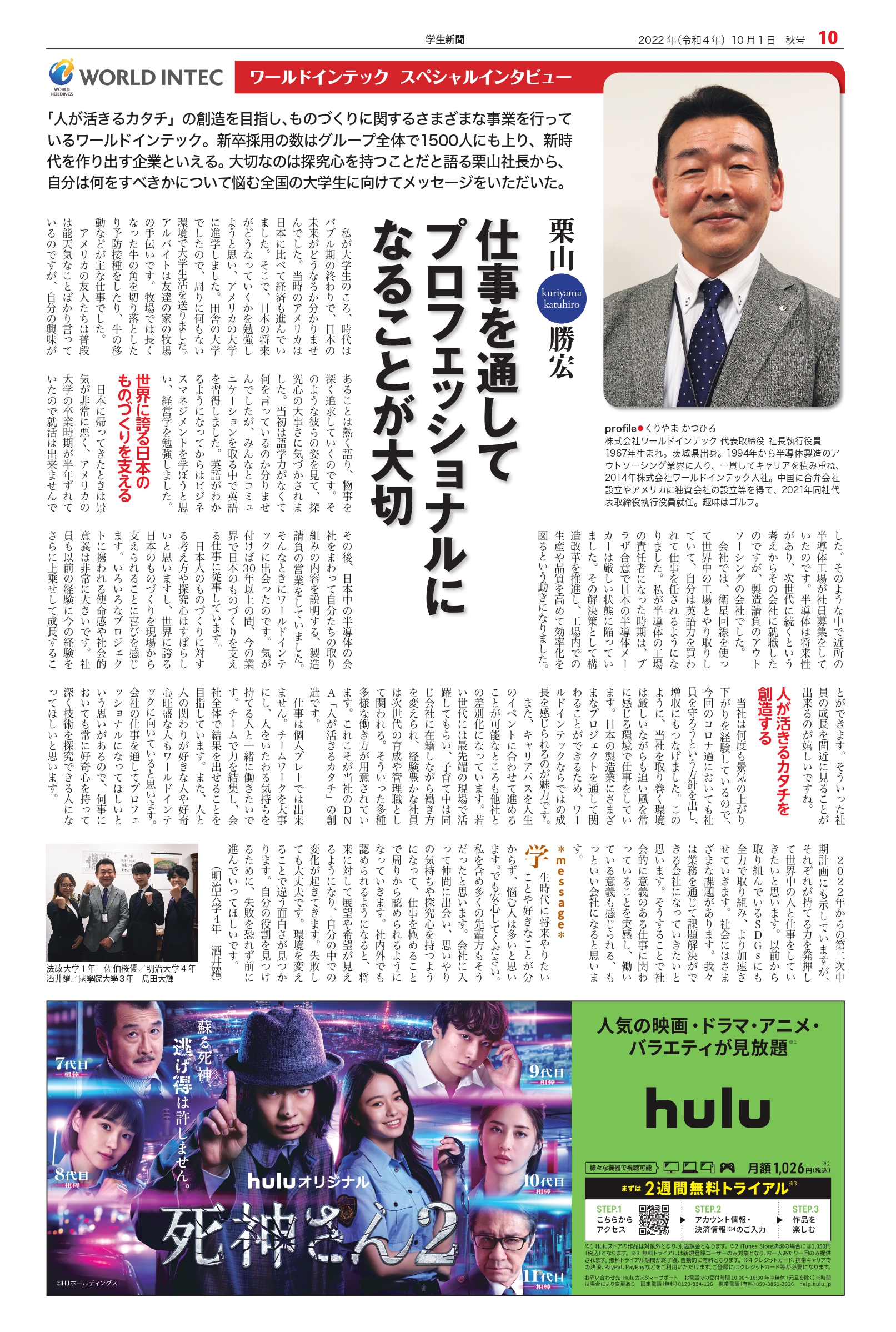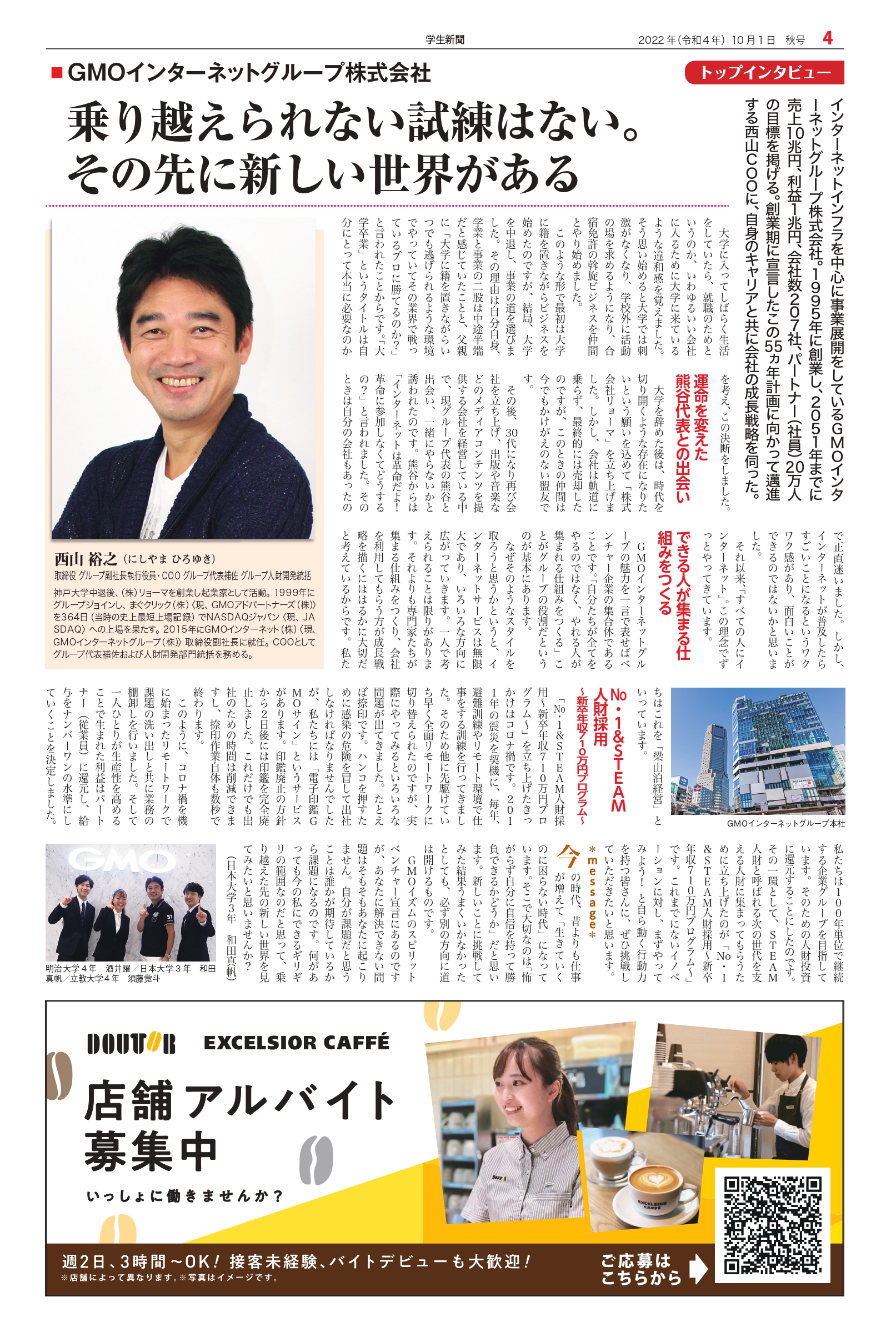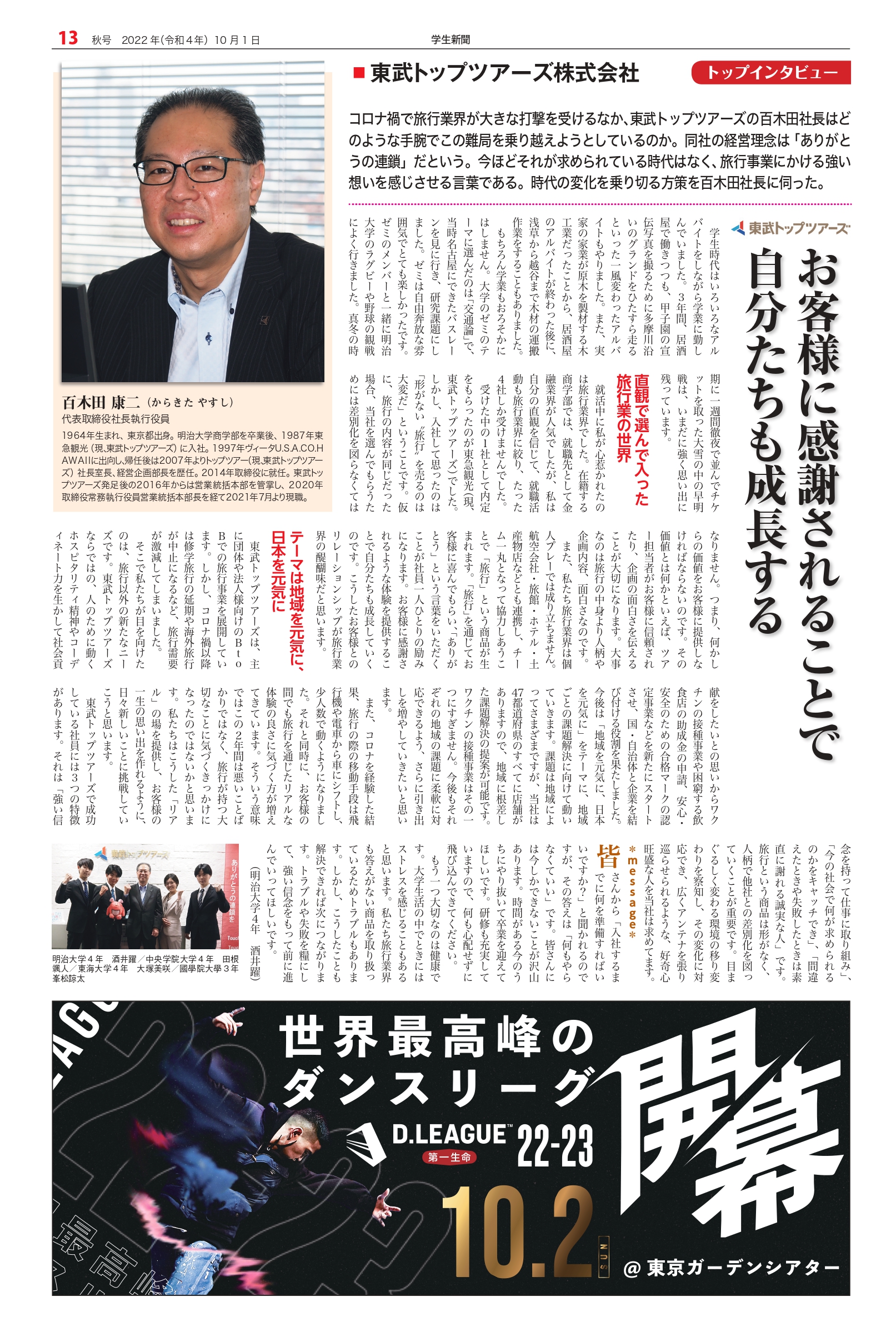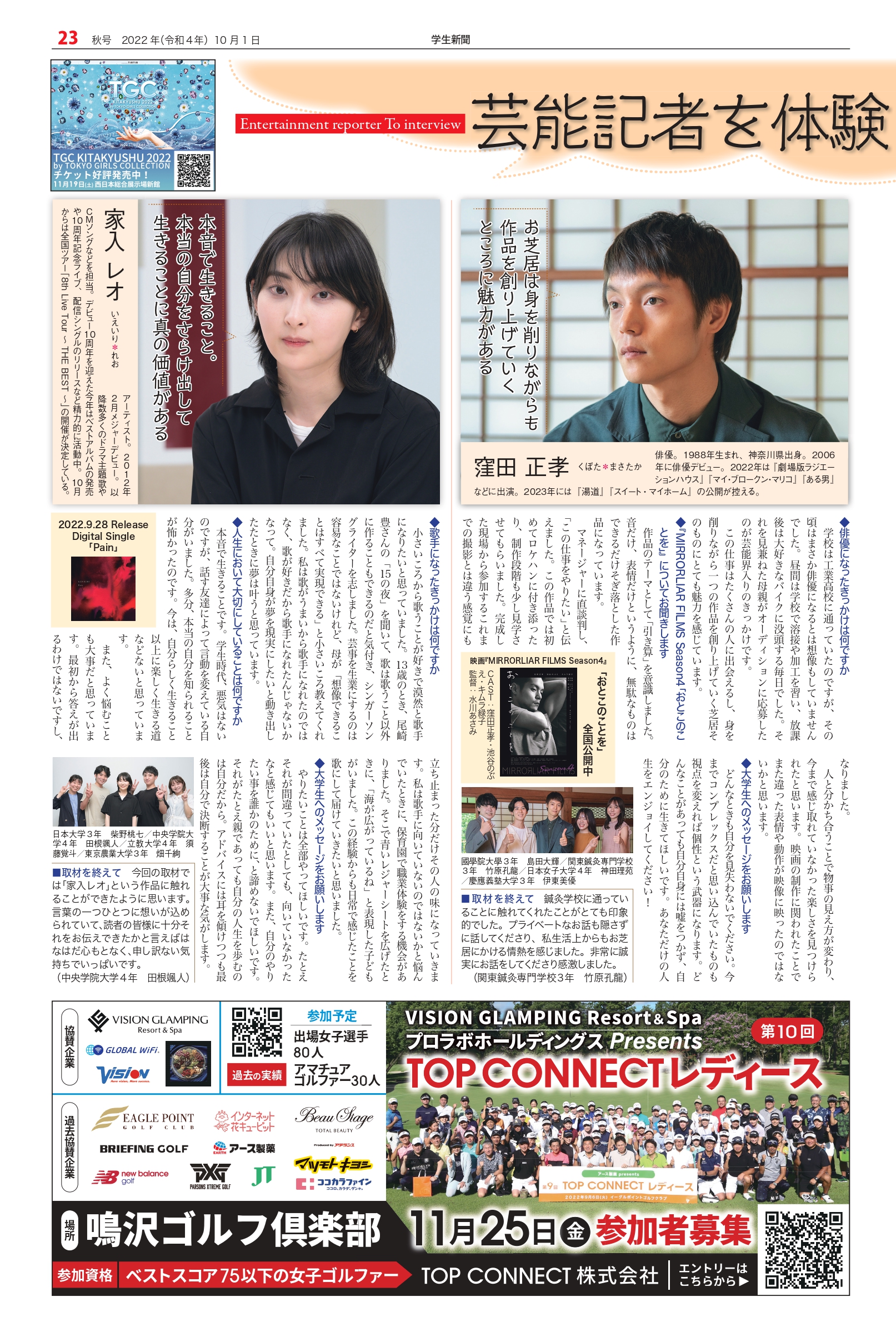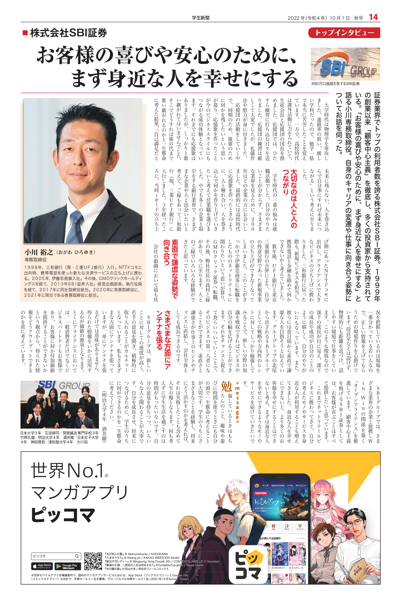 Student newspaper October 2022 issue 2022.10.01 +1 Hatena Pocket RSS Feedly Pin it +1 Hatena Pocket RSS Feedly Pin it Student newspaper intern, Management, entertainer comment: 0 Startia Holdings, Inc. President and CEO... Hiroshi Kawahara, President and CEO, Asahi Group Foods Co., Ltd. List of related articles Golf is hot right now! 2024.10.01 Michinori Mizuno, Chairman of the Board, Sony Music Foundation 2023.04.13 Yuko Tashiro, Chairman of the Board, Accordia Golf Co., Ltd. 2025.01.24 Actress Mei Hata 2024.10.01 Enako: Do what you love for a living! Anime fans can rest easy knowing... 2023.10.01 Yasuaki Nakamichi, President and CEO of Family Funeral Famille Co., Ltd. 2023.10.01 Amazon Original "Angel Flight: The International Repatriation..." 2023.03.27 Yoshinobu Kosugi, Advisor to Nippon Television Network Corporation 2026.03.02 Comment (0) Trackback (0) There are no comments on this article. There is no trackback to this article. Trackback URL To cancel reply. Name (required) E-MAIL (required) *will not be published URL