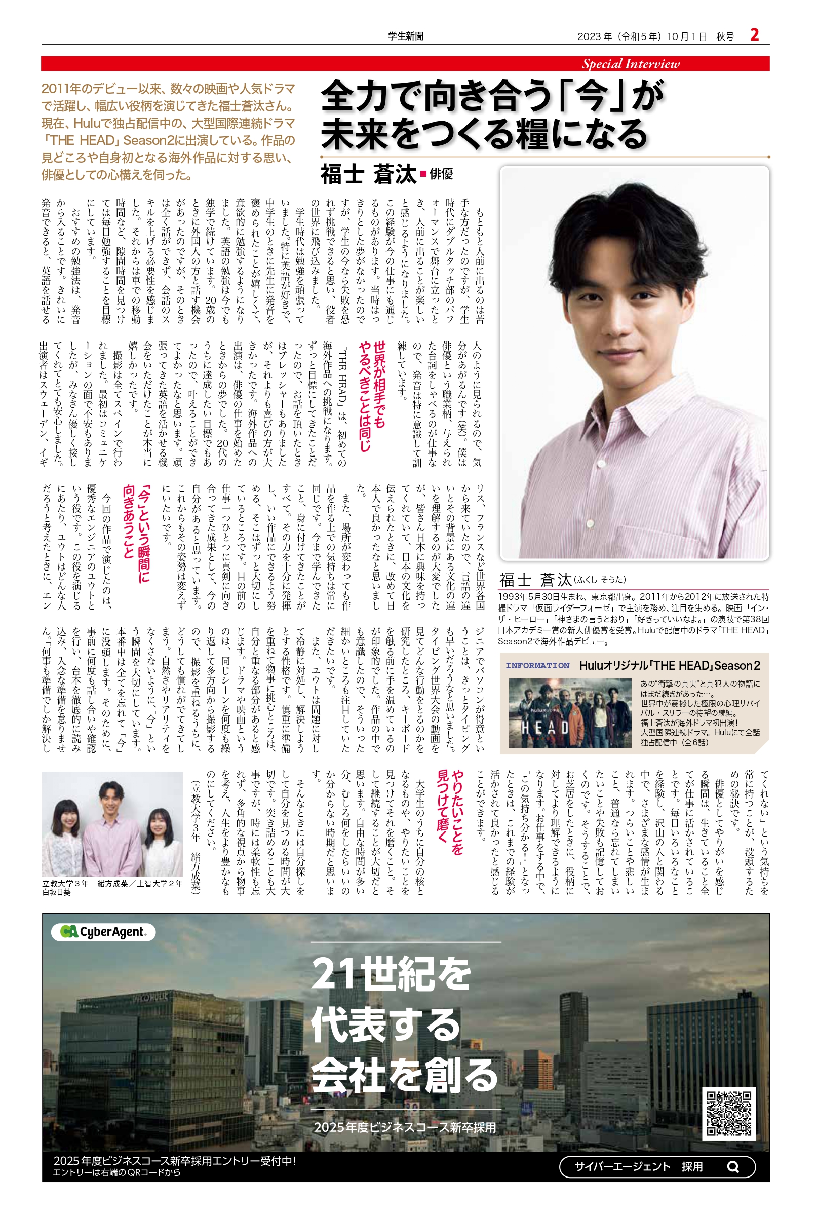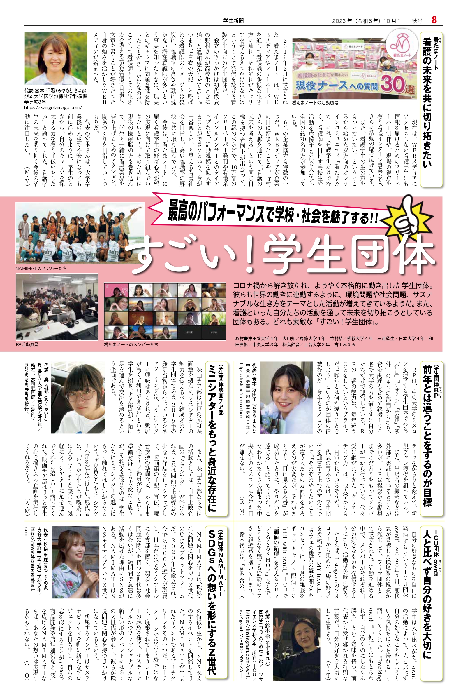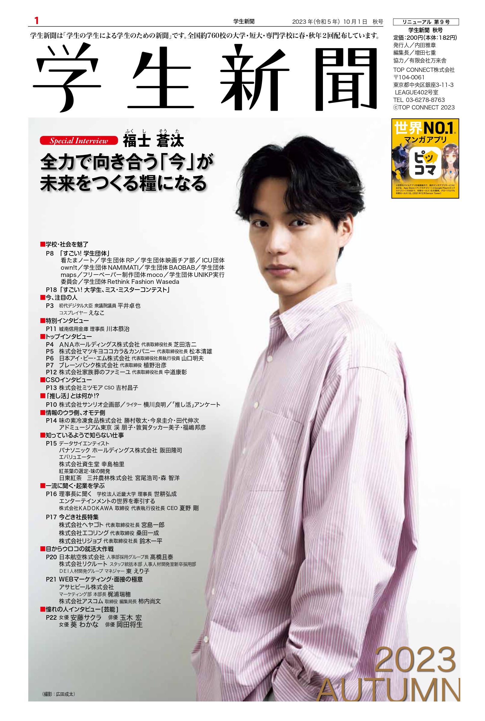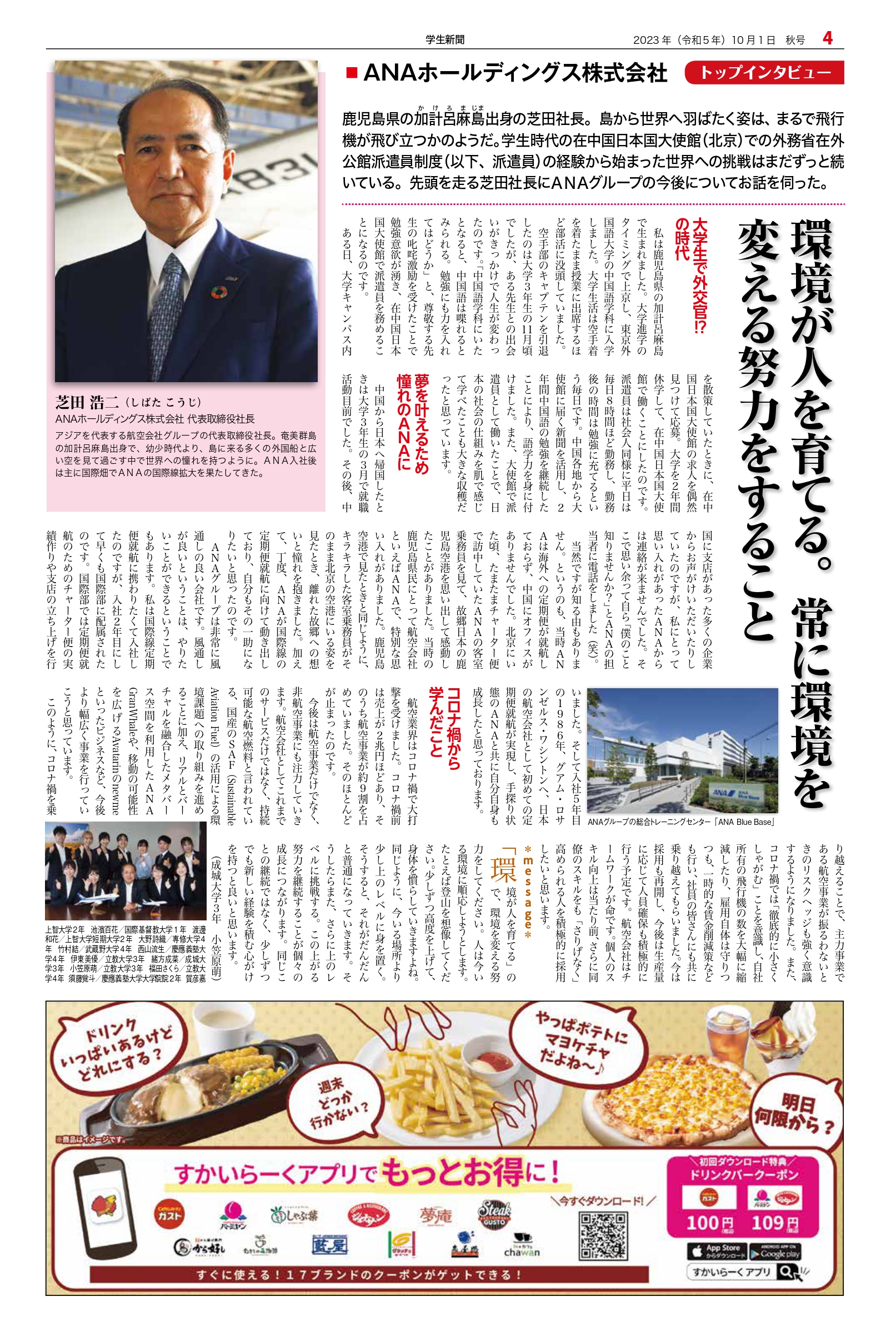 Student newspaper October 2023 issue 2023.10.01 +1 Hatena Pocket RSS Feedly Pin it +1 Hatena Pocket RSS Feedly Pin it Student newspaper intern, Management, entertainer comment: 0 "JRE POINT Stage" 1-day PR Ambassador Inauguration Event EcoRing Co., Ltd. Representative Director Kazunari Kuwata List of related articles Returning for the first time in four years! A high school student pushes forward towards his dreams! 2025.07.11 2025 V Point x SMBC Ladies Golf Tournament 2025.05.15 Film producer Shiho Akutagawa: Born from "feelings"... 2022.01.22 Miyazawa Sae: Cherish your encounters. Don't rush, and find the dreams and hopes you have... 2023.03.04 Malaysian Ambassador to Japan Dato' Syahrir Efendi... 2025.12.31 Kamakura Shinsho Co., Ltd. Chairman and CEO Yutaka Shimizu 2022.07.26 Starbucks Coffee Japan Co., Ltd. Representative Director... 2020.01.10 Mutant Wave. 2023.02.18 Comment (0) Trackback (0) There are no comments on this article. There is no trackback to this article. Trackback URL To cancel reply. Name (required) E-MAIL (required) *will not be published URL