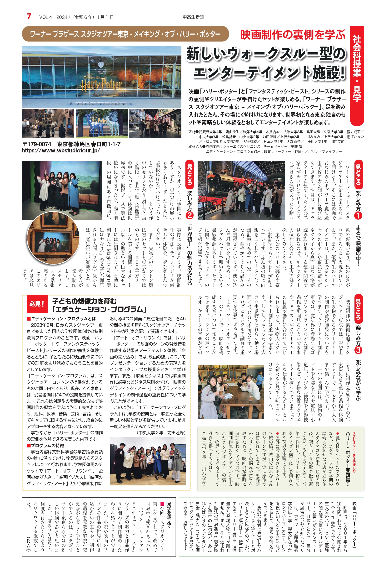 Warner Bros. Studio Tour Tokyo – The Making of Harry Potter 2024.04.01 +1 Hatena Pocket RSS Feedly Pin it Junior and Senior High School Newspaper, April 1, 2024 issue +1 Hatena Pocket RSS Feedly Pin it Junior and senior high school newspaper, Maeda Renho, Minami Yoshikawa comment: 0 JICA Global Plaza / PETOKOTO Co., Ltd. Director and Veterinarian Takanori Sato Mitsubishi Electric Corporation METoA Ginza List of related articles Takashi Sorimachi: What should we tell our children at this important time? 2024.04.01 The 37th Mynavi Tokyo Girls Collection 2023 AUTUMN... 2023.09.28 "Unmet: The Diary of a Brain Surgeon" production press conference 2024.04.11 Ai Tominaga: When an opportunity comes, be the one to grab it 2022.04.01 Forsythe is used by over 160 million students in 900 junior and senior high schools... 2023.04.01 Actress Kotone Hanase 2023.07.06 The 37th Mynavi Tokyo Girls Collection 2023 AUTUMN... 2023.09.22 Taro Fujie, President and Representative Executive Officer, Ajinomoto Co., Inc. 2024.04.01 Comment (0) Trackback (0) There are no comments on this article. There is no trackback to this article. Trackback URL To cancel reply. Name (required) E-MAIL (required) *will not be published URL